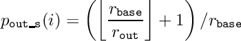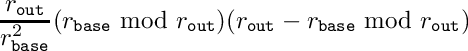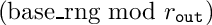 The property above is the square sum of the relative differences in probabilities between the desired uniform distribution and the generated distribution . The property can be fulfilled with the calculation , as follows: Let . The base distribution on is folded onto the range . The numbers i < r have assigned numbers of the base distribution, the rest has only . Therefore, for i < r and otherwise. Substituting this in the above sum formula leads to the desired result.
